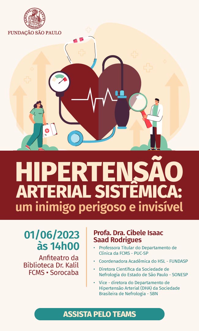 A profa. Cibele Isaac Saad Rodrigues (Medicina) realiza a palestra Hipertensão Arterial Sistêmica: um inimigo perigoso e invisível, dia 1º/6, às 14h.