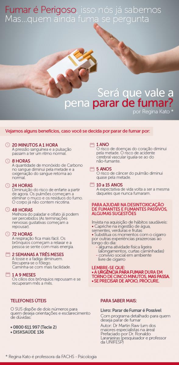 A profa. Regina Kato (Psicologia) responde, em diversos tópicos, à pergunta que fumantes ainda podem se fazer: “será que vale a pena parar de fumar”. Veja a imagem abaixo e saiba mais.