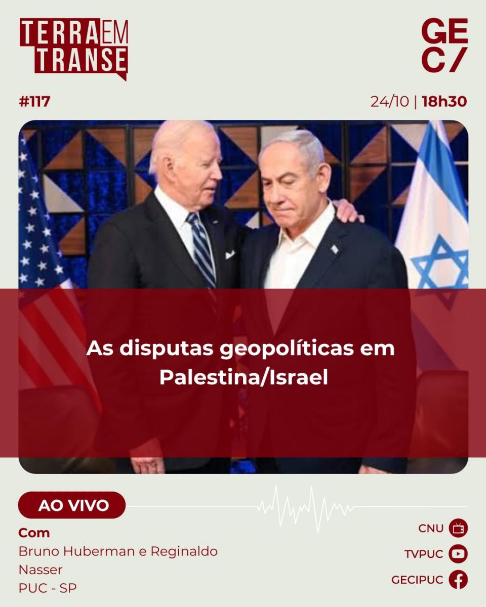 No dia 24/10, às 18h30, vai ao ar mais uma edição do Terra em Transe, programa em parceria do Grupo de Estudos sobre Conflitos Internacionais (GECI) com a TV PUC, com o tema As disputas políticas em Palestina/Israel.