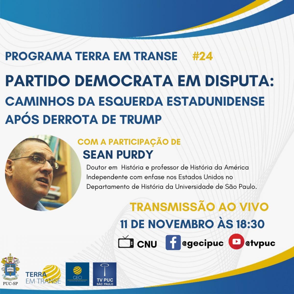 "Com a vitória de Joe Biden, as atenções se voltam para os rumos que irá tomar o seu governo e qual será a correlação de forças no partido democrata que se tornou referência internacional para as forças progressistas no mundo. Mas, Joe Biden, assim como demais lideranças do partido podem ser classificados dentro do espectro de um conservadorismo moderado e, portanto, mais próximos de certos setores do Partido Republicano do que de qualquer tendência de esquerda. No entanto, apesar de vencidos pelo establishment Democrata nas primárias de 2016 e 2020, há um setor de “esquerda” que, apesar de minoritário, vem crescendo dentro do partido democrata e tem se notabilizado pela ampla mobilização de rua nas recentes manifestações. Para covnersar sobre movimentos sociais nos EUA e seus impactos no Partido Democrata que assume o governo dos EUA em 2021 contaremos com a presença do prof Sean Purdy do Departamento de História da USP".