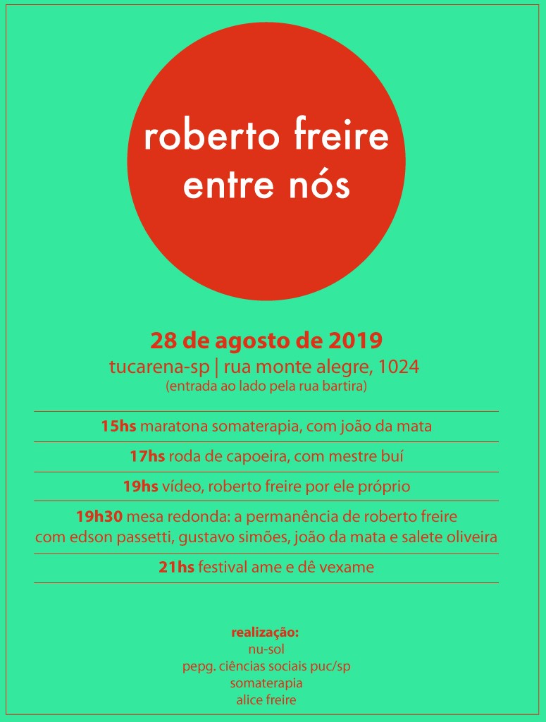 Dia 28/8, o Núcleo de Sociabilidade Libertária (Nu-Sol, Pós em Ciências Sociais) realiza o evento Roberto Freire entre nós, no Tucarena. Veja abaixo a programação.