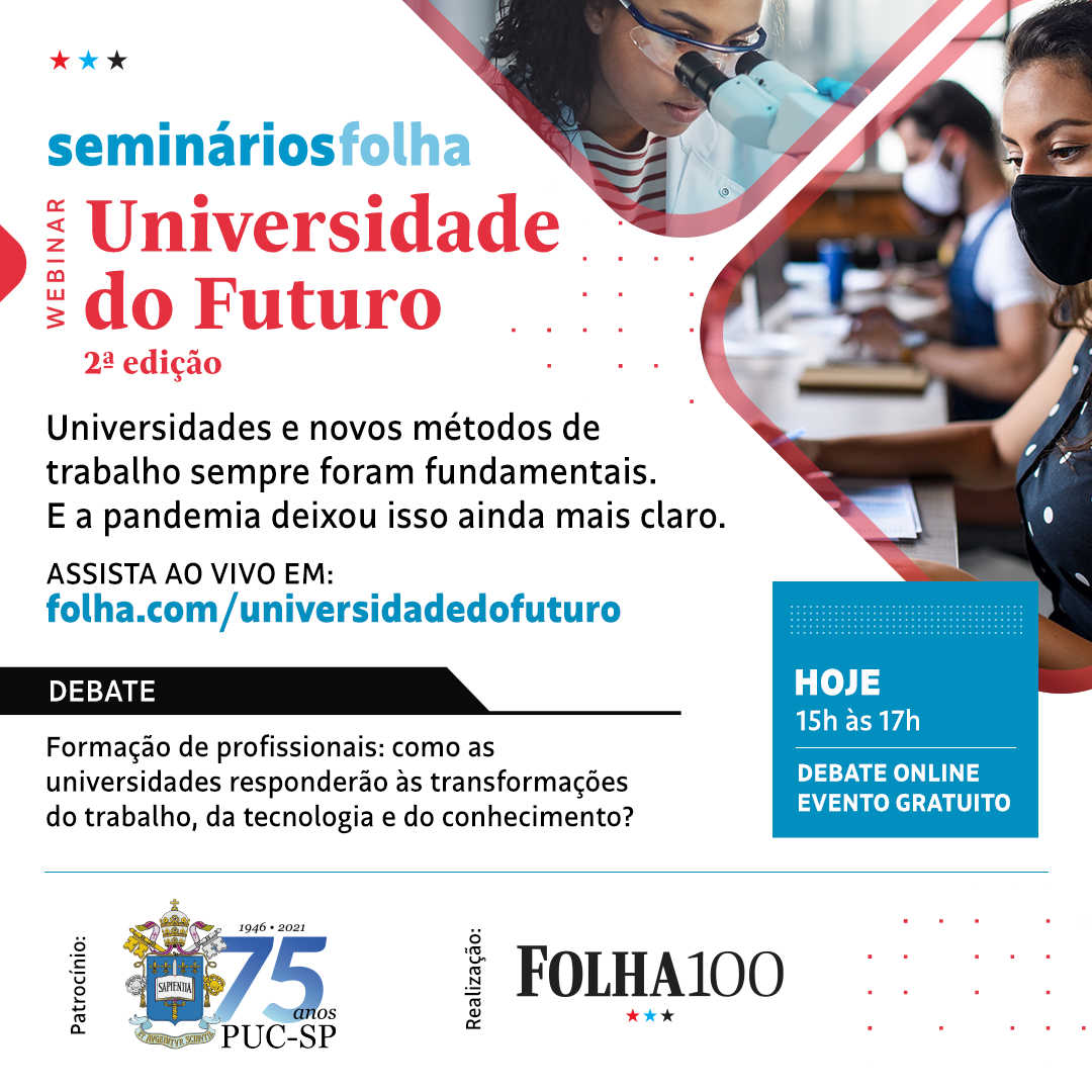 A PUC-SP e o jornal Folha de S.Paulo realizam, neste dia 5/10, às 15h, a última atividade da 2ª edição do webinar Universidade do Futuro.