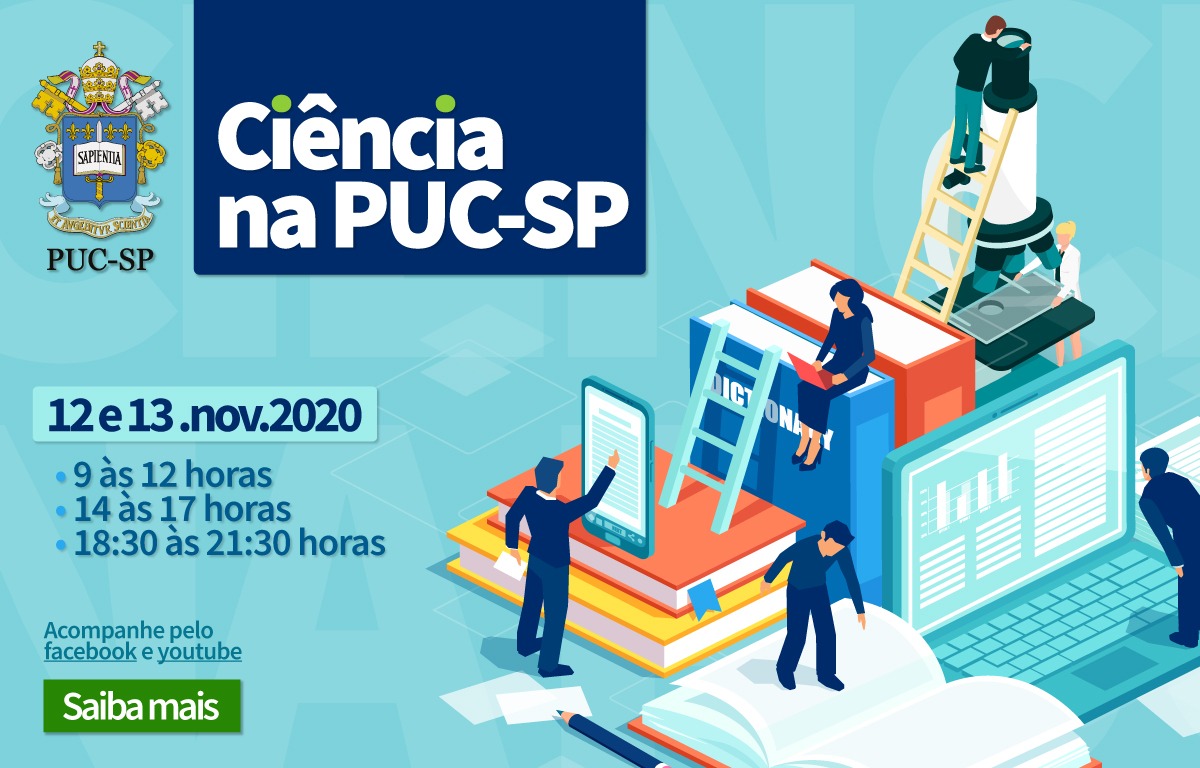 “Ciência na PUC-SP”, 12 e 13/11/2020 das 9:00 às 12:00; das 14:00 às 17:00; e das 18:30 às 21:30. Assim os estudantes podem assistir as atividades em seus respectivos horários de aula, mas a programação é aberta a todas e todos.