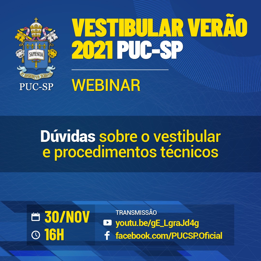 Dia 30/11, às 16h, a PUC-SP realiza um evento online para falar sobre o Vestibular de Verão 2021.