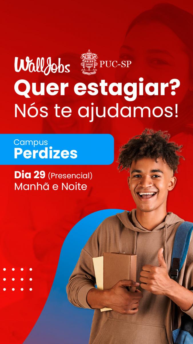 A empresa promove, dia 29/10, ação de recrutamento no Campus Perdizes, nos turnos: Matutino (das 9h às 12h30) e Vespertino e Noturno (das 17h30 às 21h).