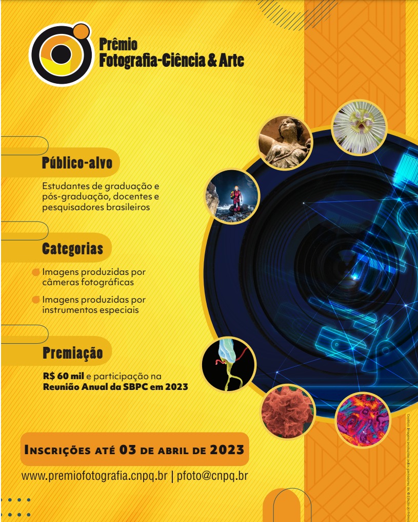Até o dia 3/4, estão abertas as inscrições para o XII Prêmio de Fotografia, Ciência & Arte, ed. 2022, uma iniciativa do Conselho Nacional de Desenvolvimento Científico e Tecnológico (CNPq), ligado ao Ministério da Ciência, Tecnologia e Inovações.
